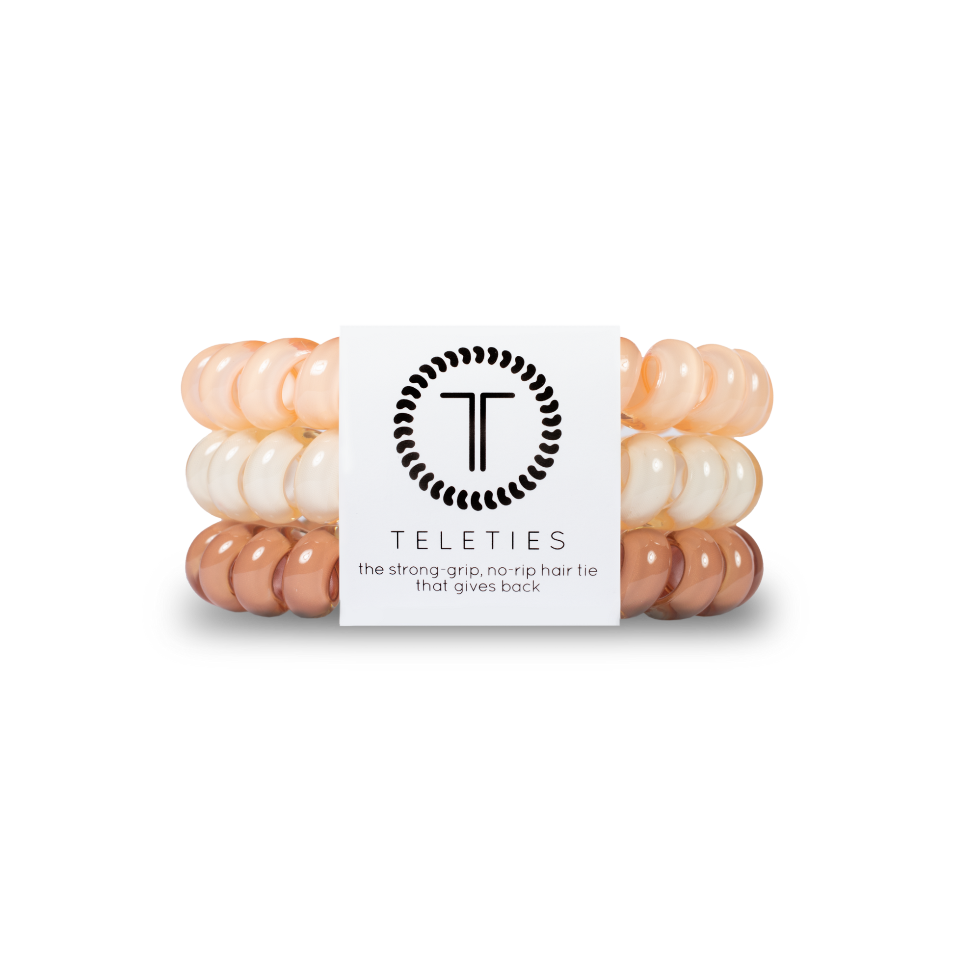Hold your hair and enhance your style with TELETIES. The strong grip, no rip hair tie that doubles as a bracelet. Strong, pretty and stylish, TELETIES are designed to withstand everyday demands while taking your look to the next level.